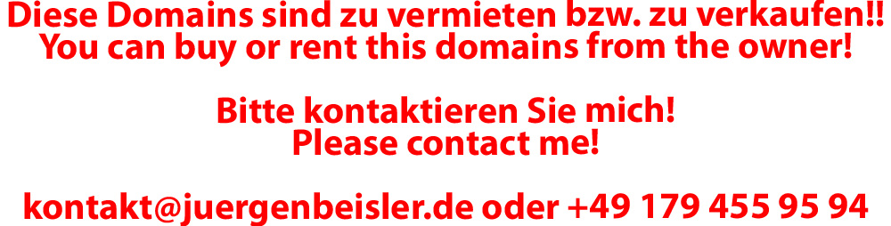 Diese Website zeigt die noch in meinem Privatbesitz befindlichen Domains. Ursprünglich sollten mit diesen Domains einzelne Projekte umgesetzt werden. Dies wurde aufgegeben. Somit sind die Domains zu haben. Es werden keinerlei Daten von diesem Server angenommen, auch wenn Ihr PC Daten senden sollte. Selbstverständlich werden keine Daten gespeichert, ausgewertet oder weitergegeben. Cookies verwende ich nicht. Es besteht auch keine Möglichkeit für Sie auf dieser Seite Daten einzugeben. Somit gibt es auch kein Problem in Bezug auf Datensicherheit. Sollten Sie mir eine E-Mail senden, tun Sie dies aus freien Stücken. Besser ist es mich anzurufen! Es handelt sich um eine rein private Seite!